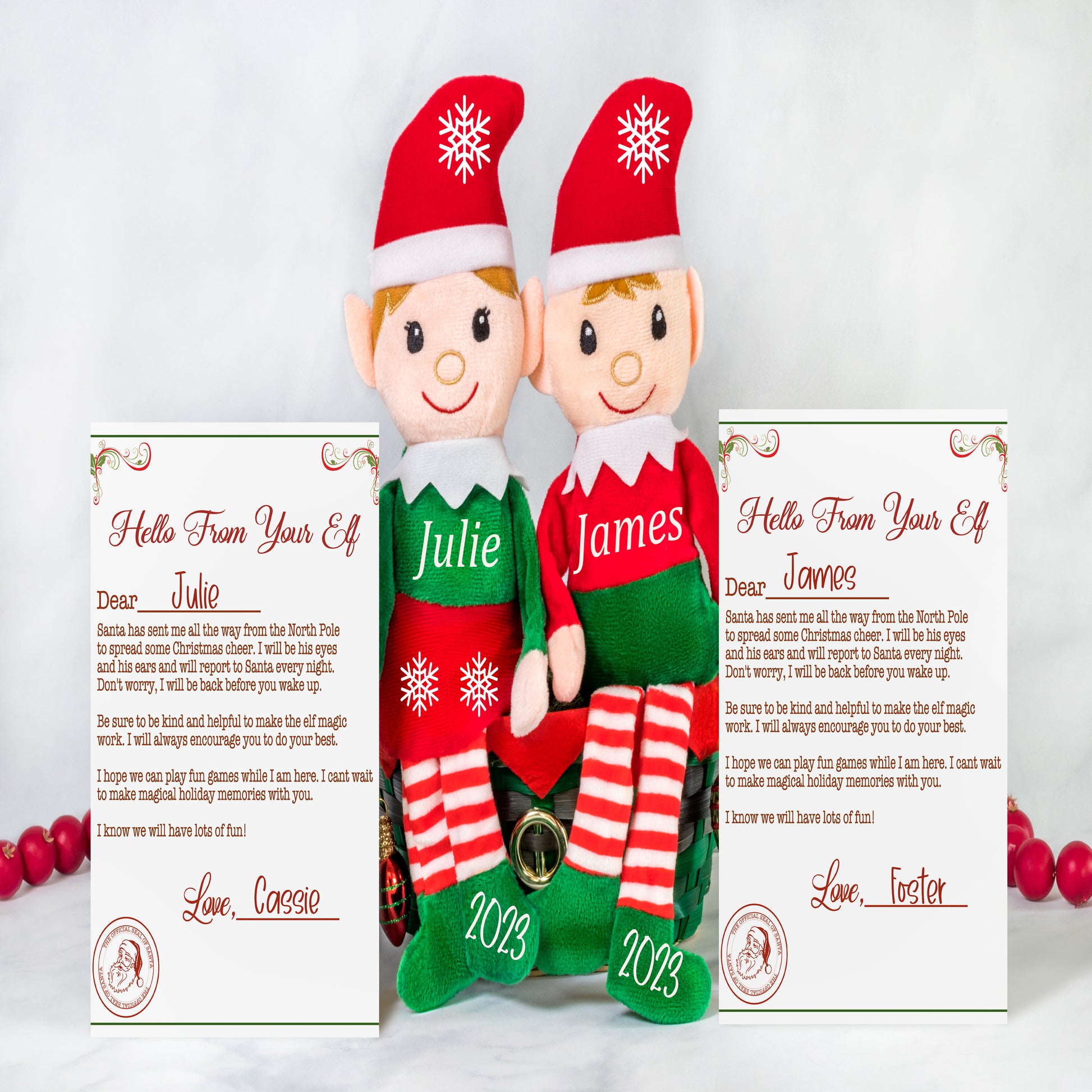 These adorable personalized elves are perfect for stocking stuffers and elf themed holiday decorations in your living space. They also make great gifts for teachers and whole class Christmas gifts.